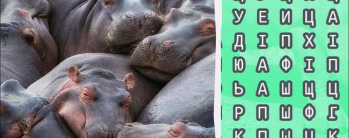 Det kommer til å bli litt av en utfordring å løse. Det tar sekunder å finne ordet «flodhest» i et puslespill / collage av Moje, foto av depositphotos.com...